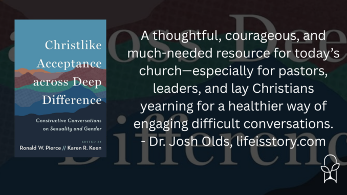 In fact, I would say that the biggest takeaway from Christlike Acceptance Across Deep Difference is that Christians can have these conversations and hold these diverse convictions while both upholding a high view of Scripture and the dignity of gender diverse and same-sex attracted individuals. Nobody in this book is following the culture war path of making a condemnation of homosexuality a matter of salvation. There’s no discussion of bathroom bills or unfounded fears of harm to children. Rather, there is Christlike acceptance that gender diverse and same-sex attracted individuals can be and are believers in Jesus who are faithfully living out their convictions.